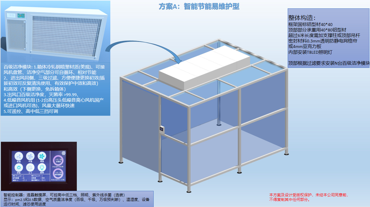 2.與土建式或裝配式百級潔凈室相 比,投資少,見效快,安裝簡便,運(yùn)行費(fèi)用低。